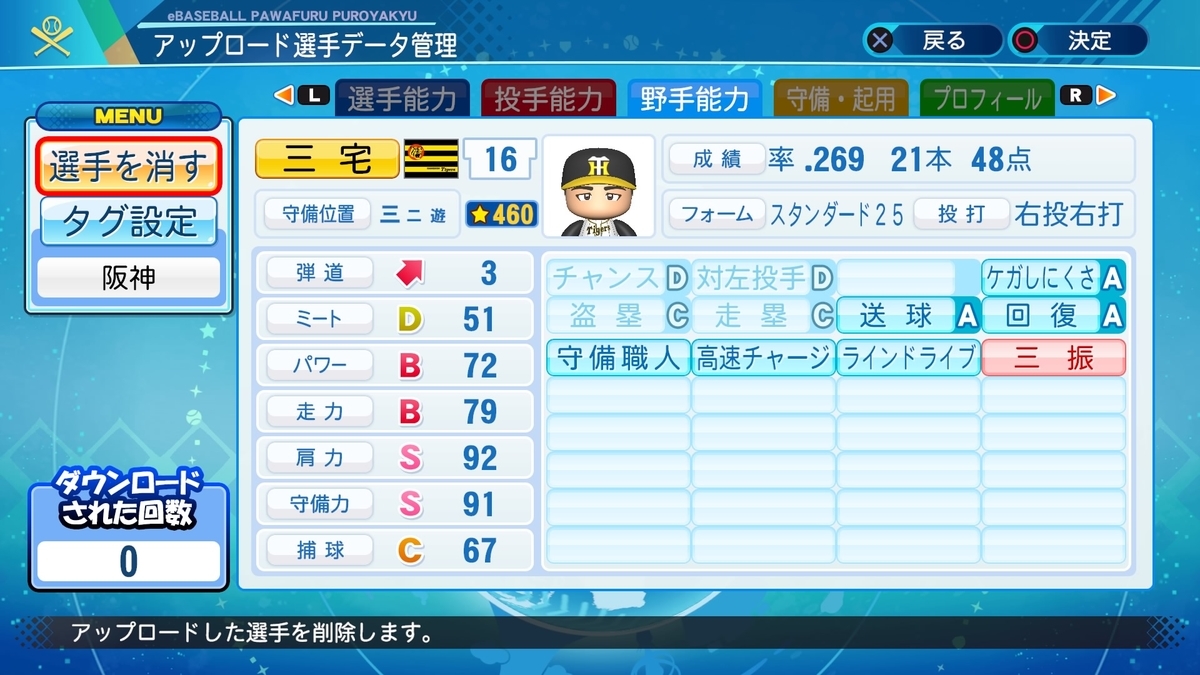 2020-10-22 三宅秀史(阪神)【パワプロ2020・パワナンバー】 OB選手 阪神 パワナンバー:12100 91054 11780 1958 .269(510-137) 21本 48点 査定 守備に関しては史上最高とも言われているのでがっつり。