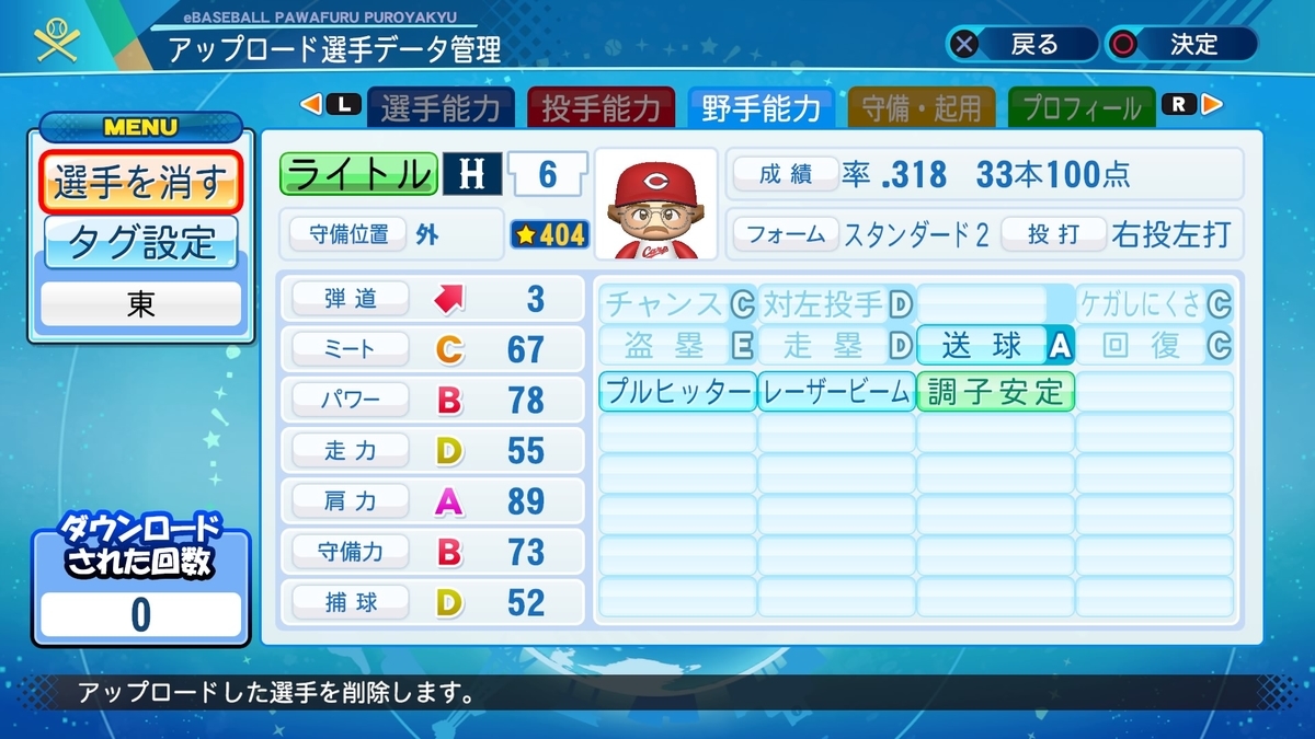 2021-01-25 ジム・ライトル(広島)【パワナンバー・パワプロ2020】 OB選手 助っ人外国人 広島 パワナンバー:12200 91314 30392 査定 1981 .318(493-157) 33本 100点 基礎能力 当時は狭い広島市民球場なのでパワーはB。 1978~81の4年連続でGG賞に輝くほど守備はよく、特に肩が強く補殺数でもリーグ上位。 特殊能力 送球A レーザービーム リーグ2位の11補殺 広島に在籍していた77~82年の外野手補殺数は59で2位の山本浩二より12コも多い。 プルヒッター 本塁打方向 右31本 左2本 調子安定 毎年安定して成績を残していることから
