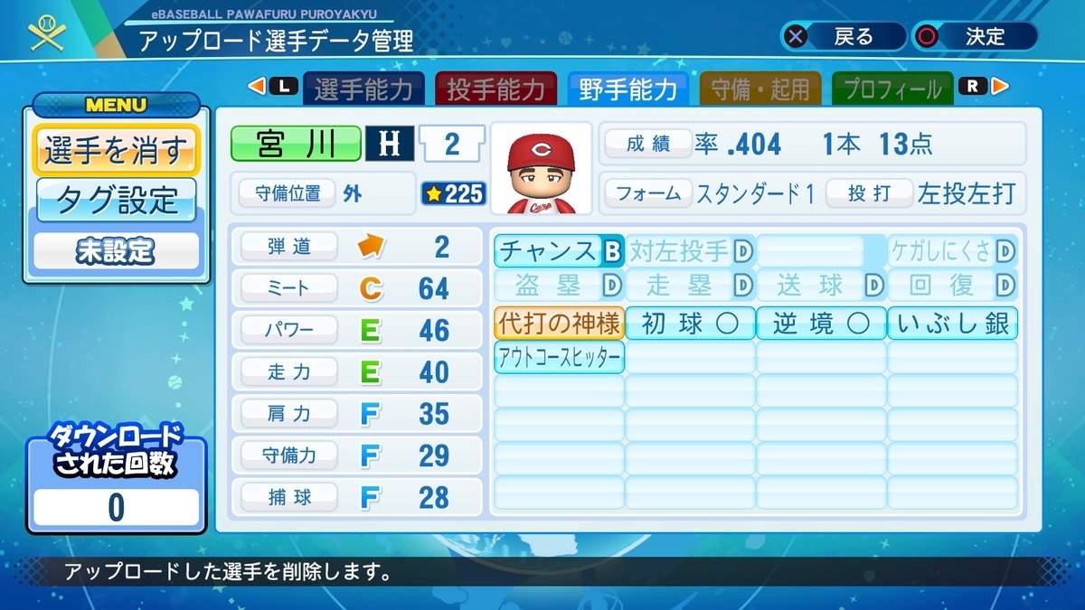 2021-11-13 宮川孝雄(広島)【パワプロ2021・パワナンバー】 OB選手 広島 パワナンバー:12700 92135 37192 1972 .404(52-21) 1本 13点 カープの代打の切り札。通算代打起用回数778、通算代打安打189、通算代打打点118はNPB記録。
