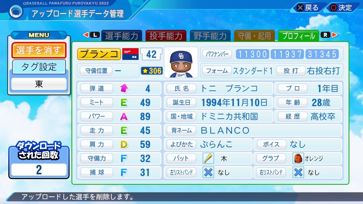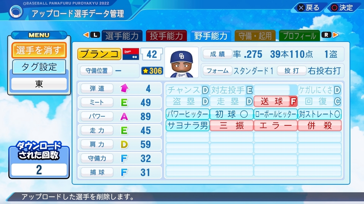 2023-10-19 トニ・ブランコ(中日)【パワプロ2023・パワナンバー】 OB選手 中日 助っ人外国人 パワナンバー:11300 11937 31345 2009 .275(549-151) 39本 110点