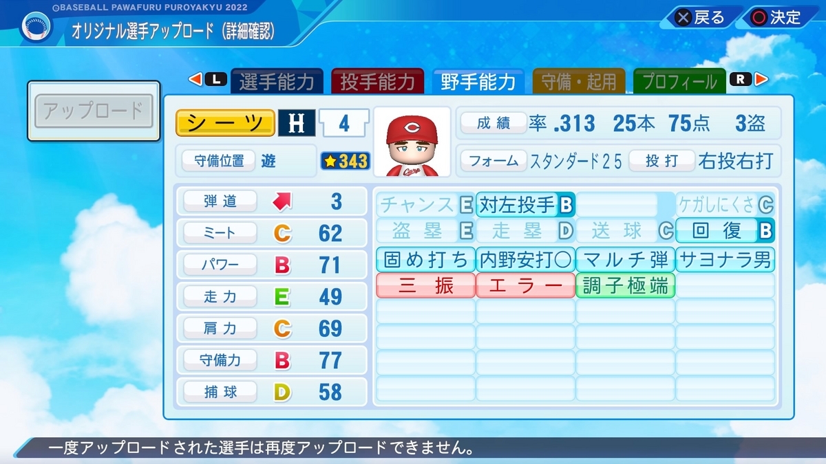 アンディ・シーツ(広島)【パワプロ2023・パワナンバー】