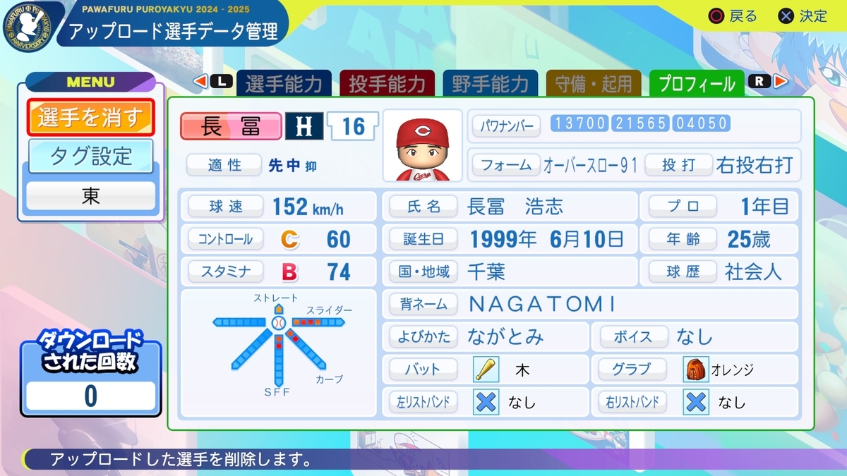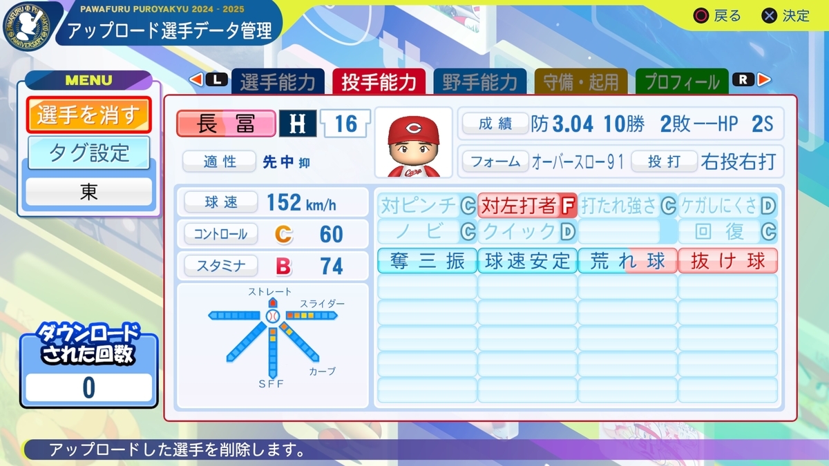 コントロールが良いイメージではないが、この年は与四球もそこまで多くなく無四球完投2試合。特能を考慮しCランク。